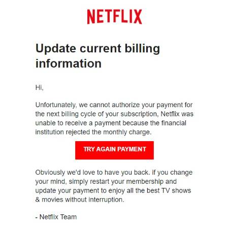 Tajjeb li wieħed joqgħod attent għall-emails bħal dawn għax mhux qed jiġi minn Netflix iżda minn scammers tal-internet li jipprovaw jaraw kif ħa jisolħu lil dak li jkun u jisirquh b’xi kemxa tajba ta’ flus.