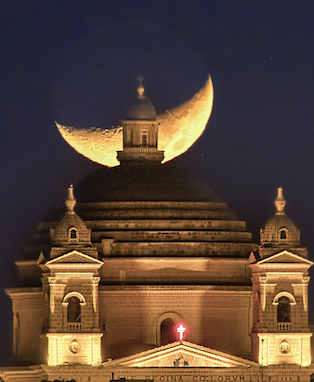 Il-fotografa Maltija Marika Caruana rnexxielha tiġbed ritratt impressjonanti tal-koppla tal-Knisja Parrokjali tal-Imġarr bil-qamar fl-isfond.