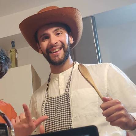 Fil-filmat ta’ Min Imissu? fejn jidher Bernard flimkien ma’ Karl u Matthew fil-kċina narawh b’idu imfaxxata.