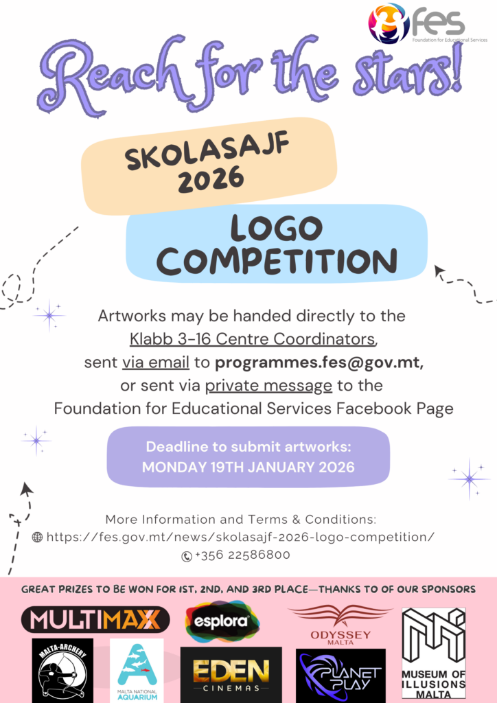 Għal aktar informazzjoni, wieħed jista’ jsegwi l-paġni uffiċjali tal-Fondazzjoni għal Servizzi Edukattivi billi tidħol hawn: https://fes.gov.mt/news/skolasajf-2026-logo-competition/