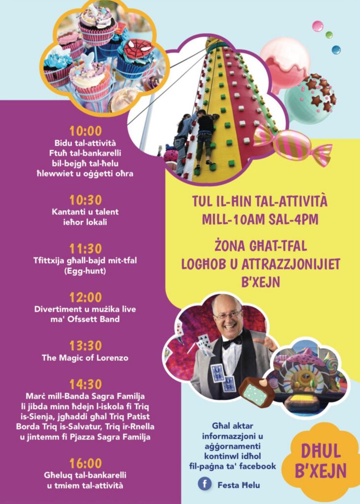 Apparti l-logħob, Festa Ħelu se tkun animata b’divertiment mużikali, wirjiet ta’ maġija u anke d-daqq tal-banda, li jkomplu jagħtu ħajja lill-avveniment.