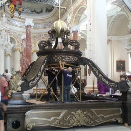 F’intervista, wieħed jismu Justin Spiteri qal lil Gwida.mt: “Mingħajr l-anġli, s-saqaf tat-tribuna, li hu magħmul mill-bronż, jiżen sitt tunellati. Il-kolonni u l-bażijiet magħmula mill-aqwa irħam li jeżisti, li ġej minn Carrara fl-Italja.”