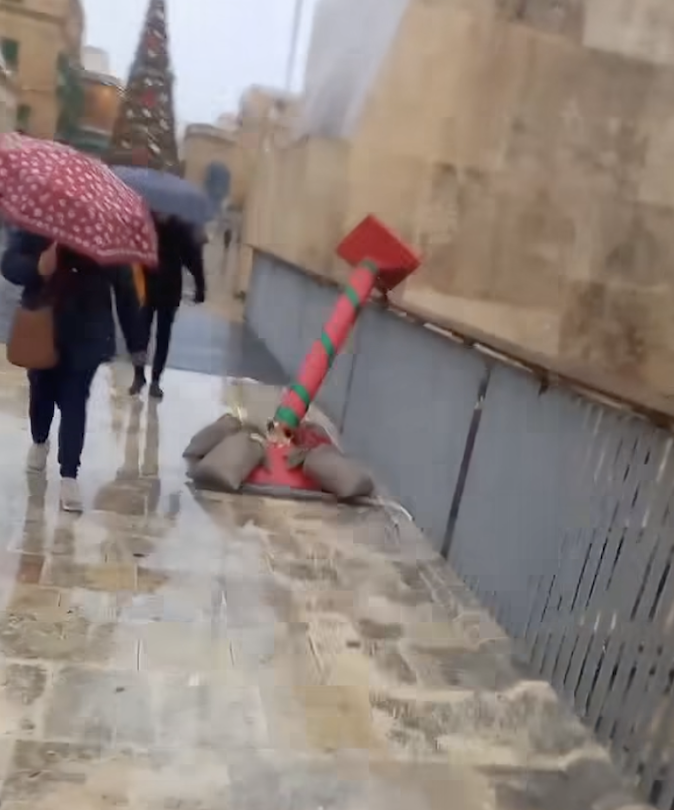 B’konsegwenza tal-maltemp li ħakem lil pajjiżna llum, xi tiżjin tal-Milied li kien qiegħed fid-daħla tal-Belt Valletta spiċċa ġarrab xi ħsarat.